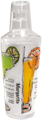 Measures: 9″ x 3.25″ x 3.25″ / 23cm x 8cm x 8cm Capacity: 18 ounces Our cocktail shaker is made of heavy duty acrylic. Includes a 2 ounce shot glass and 4 recipes that are printed on the shaker. Hand washing recommended.