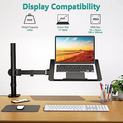 Compatibility: Fits one laptop or notebook up to 17” and supports weight up to 22lbs. Mount plates detachable and height adjustable. Dual mounting options for laptop or a monitor with mounting holes 75x75mm and 100x100mm