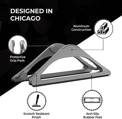 PATENT PENDING DESIGN: Sleek and minimalist design (multiple US and international patents pending) is both functional and space-saving while adding a unique look and feel to your desk setup – vertical laptop stand made of anodized aluminum alloy with a space gray finish to color match the space gray Macbook
