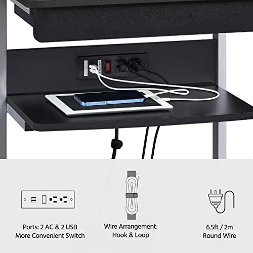 【Versatile Usage】This compact desk workstation with a power outlet is perfect for small spaces for dealing deal with your computer, laptop, printer, books, and others. It can serve as a portable presentation lectern, mobile standing computer desk, laptop desk, office table, or others in the living room, study, bedroom, classroom, meeting room