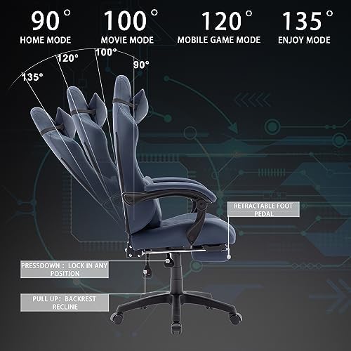 OHAHO Gaming Chair Computer Chair with Footrest and Lumbar Support, Height Adjustable Game Chair with 360° Swivel Seat and Headrest and for Office or Gaming (Blue)