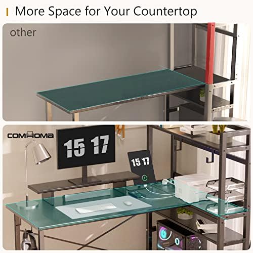 【Larger Surface, Better Use of Space】Compared to other desk with shelves, the extended side board of the L-shaped desk provides addtional room for you to place your printer, laptop, dual monitors and books; Everything is at your fingertips, neat and organised