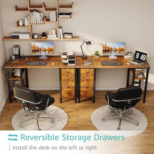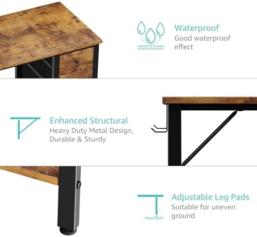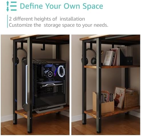VINTAGE STYLE DESIGN: Computer desk with 2 storage shelves and 4 ππππ§ππ πΏπ§ππ¬ππ§π¨, you can try this two installation methods (left or right), and the shelves have two different heights of installation, you can customize the storage space to your needs. This desk is made of thick P2 particle wood board with scratch-resistant, anti-collision and waterproof, protect home office desk surface from daily wear and tear.