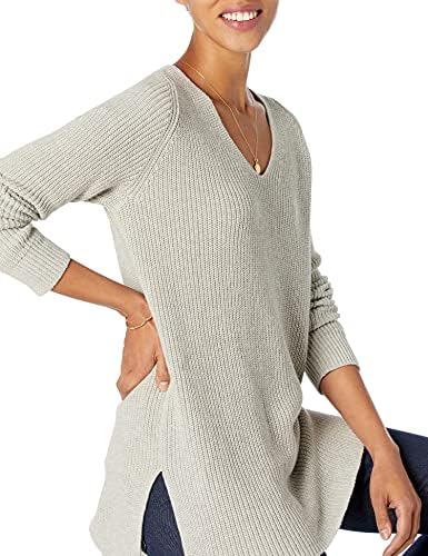 An Amazon brand -An instant favorite, this tunic-length deep v-neck sweater is one to buy in multiple colors. With a shaker stitch, deep v-neckline, and easy side slits, pair this perfect piece with skinnies or leggings for a pulled-together yet cozy look