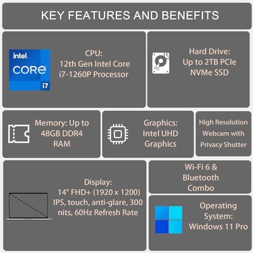 【Processor】12th Gen Intel Core i7-1260P Processor (12 Cores, 16 Threads, 18MB Intel Smart Cache, 1.5 GHz at Base Frequency, Up to 4.7 GHz at Max Turbo Frequency)