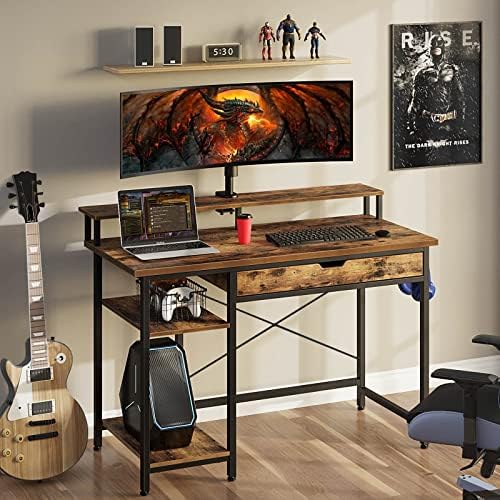 【Ergonomic Desk】With a height of 5” monitor shelf for the computer monitors, this desk is ergonomical designed for people to have a comfort work position, avoiding neck pain. Moreover, the 7” width monitor shelf is able to hold 2 monitors or provide an extra room for storage, keeping your computer desk clean and organized