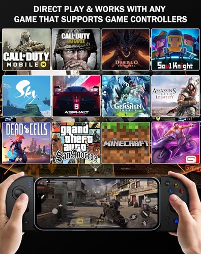 š®ćDirect Play & Works with any Game that Supports Game Controllers ćBluetooth 5.0 connection can be played directly, ultra-low latency, works with any game that supports game controllers, such as Call of Duty Mobile, Genshin Impact, Minecraft, Asphalt 9: Legends, Diablo Immortal, Sky: Children of Light, GTA: Liberty City Stories, Gangstar Vegas and more.