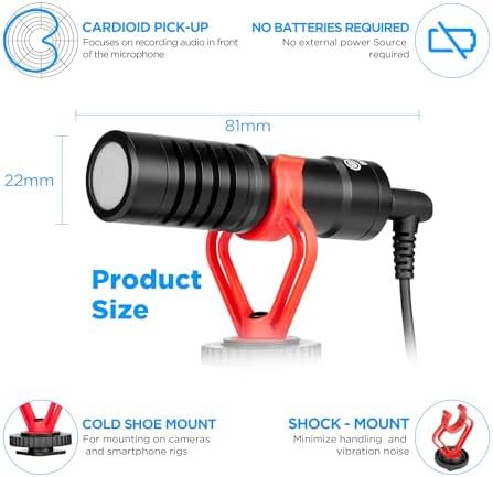 1 Plug & Play 2 No Battery Needed 3 Cardioid Video Microphone 4 Durable Construction 5 Light-Weight Shotgun Mic