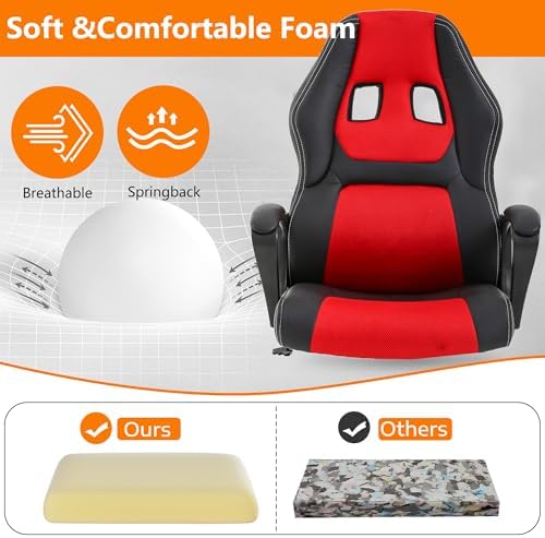 Lumbar Support for Enhanced Comfort:Experience exceptional comfort during long gaming sessions with the built-in lumbar support of this gaming chair. This office chair promotes proper spinal alignment, reducing back strain and fatigue. Say goodbye to discomfort and focus on your game with enhanced support.