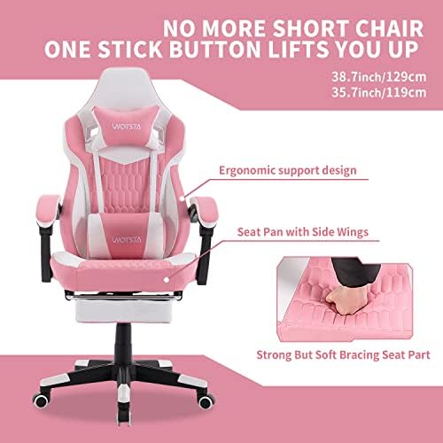 HIGH QUALITY MATERIAL – Our high back gaming chair is thickly cushioned for maximum comfort and premium PVC leather, Sponge and thick steel frame structure, whether you’re spending on the office, or computer gaming. the chair is equipped with freely adjustable lumbar support and a headrest pillow to protect your spine and neck,