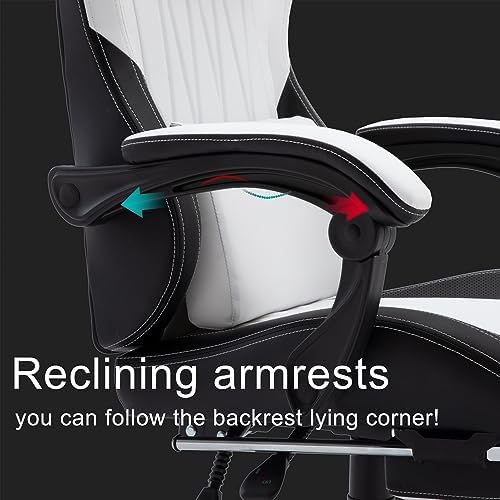 This chair has a multi-function backrest that can adjust from 90-135 degrees, a 360° swivel round base for easy movement, a retractable footrest for added relaxation, a removable headrest pillow for neck support, and a massage lumbar cushion for lower back comfort.