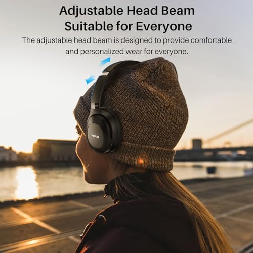 TOZO Hybrid Active Noise Cancelling Headphones, Wireless Over Ear Bluetooth Headphones, 40H Playtime, Hi-Res Audio Custom EQ via App Deep Bass Comfort Fit Ear Cups, for Home Office Travel Black