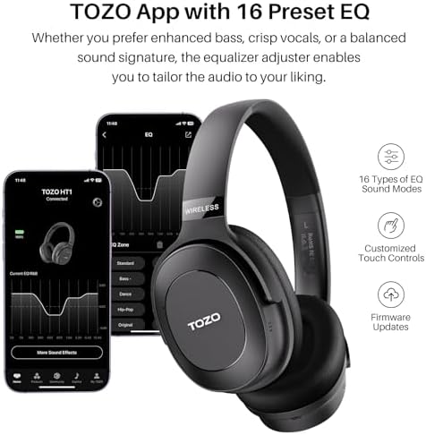 [TOZO App For Customized Sound] Whether you prefer enhanced bass, crisp vocals, or a balanced sound signature, the equalizer adjuster enables you to tailor the audio to your liking. You can boost specific frequencies to create a personalized listening experience that suits your taste.
