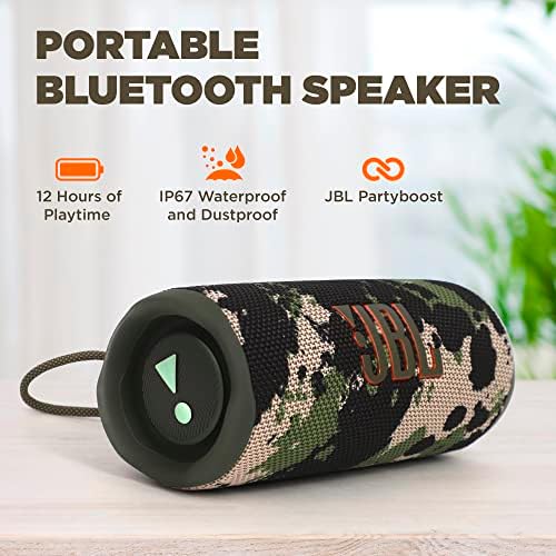 JBL Flip 6 – Waterproof Portable Bluetooth Speaker, Powerful Sound and deep bass, IPX7 Waterproof, 12 Hours of Playtime with Megen Hardshell Case – Camo