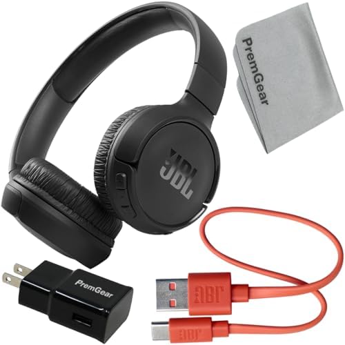 This Exciting Bundle/Kit Includes: JBL Tune 510BT: Wireless On-Ear Headphones (Black) with Purebass Sound, Charging Cable, PremGear Wall Adapter and PremGear Quality Cleaning Cloth