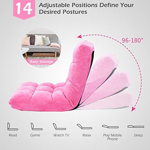 šµćUp to 14 PositionsćFeaturing a click-clack mechanism, this floor chair is able to flexibly adjust its backrest from 0 to 84 degrees and quickly switch among 14 positions in a second. It allows you to relax in an upright position or even lay all the way back for a quick snooze.