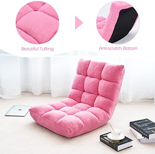 šµćUp to 14 PositionsćFeaturing a click-clack mechanism, this floor chair is able to flexibly adjust its backrest from 0 to 84 degrees and quickly switch among 14 positions in a second. It allows you to relax in an upright position or even lay all the way back for a quick snooze.