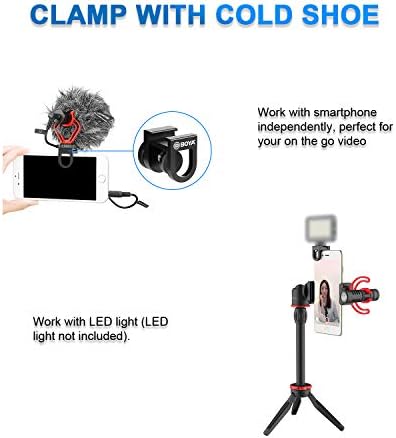 PHONE CLAMP: The phone clamp is with cold shoe mount, which can clamp the MM1 microphone to your smartphone directly or clamp a LED light ( not included) to your smartphone.