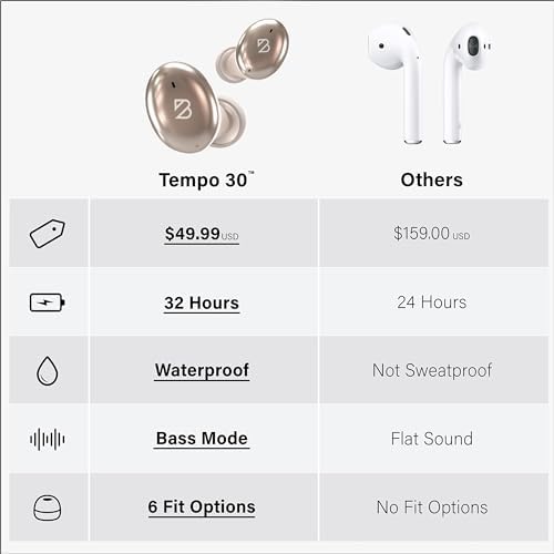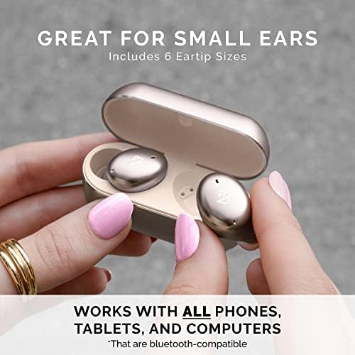 Tempo 30 Wireless Earbuds for Small Ears with Premium Sound, Comfortable Bluetooth Ear Buds for Women and Men, Gold Earphones for Small Ear Canals with Mic, IPX7 Sweatproof, Long Battery, Loud Bass