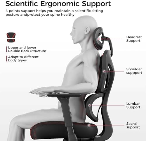 Truly Scientific Ergonomic Dual Backrest &3D Lumbar Support, healthy spine curvature.Upgrade High-Density Foam Cushions,balance support