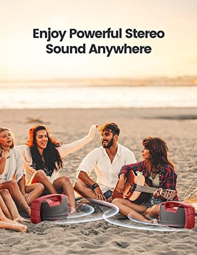 Portable Wireless Bluetooth Speaker, 40W Loud Sound IPX7 Waterproof Speaker, 32H Playtime, Rich Bass, Bluetooth 5.0, TWS Pairing, Built-in Mic, Outdoor Speaker for Home, Party, Pool, Beach-Red