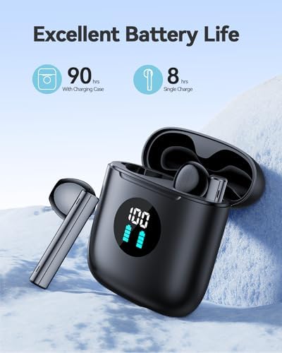 90 Hours Battery Life & LED Power Display: BOLOXA wireless ear buds are equipped with large capacity rechargeable battery, you can get 8 hours of listening life on a single charge, with the case that extends it to total 90 hours. So you never worry about battery shortage. The digital LED screen indicates the percentage of the real-time battery of the charging case, the LED bars show the charging status of each buds. You can precisely manage the usage of your bluetooth earphones.