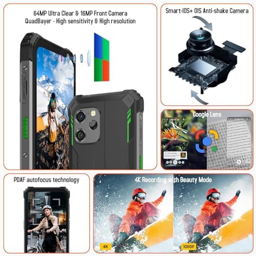 💐【64 MP OIS Anti-shake Camera & Google Smart Lens】💐Blackview phone BV8900 is equipped with a 64MP OIS Anti-Shake main camera and a 5MP FLIR thermal imaging camera. With the anti-shake camera, you don’t have to worry about blurry photos anymore. The 16MP front camera that supports beauty mode allows you to take more natural-looking photos.The military grade cell phone BV8900 also features 360° panorama mode, underwater mode, night mode, HDR, and professional mode for more surprising photos. Furthermore, the Blackview phone unlocked BV8900 debuts Google Smart Lens for instant tasks via the camera. Easily translate text, homework answer help, identify plants, and more.