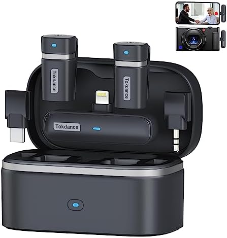 【Mini 3-in-1 Super Compatible, Plug and Play】All-in-one design makes it ultra-portable and supercompatible,plug and play.Tokdance TDS9 wireless lavalier mic includes 3 connectors: Lightning, Type-C and 3.5mm Jack and works with mainstream DSLR cameras/computer /phone/iPhone/iPad/iPhone 15.