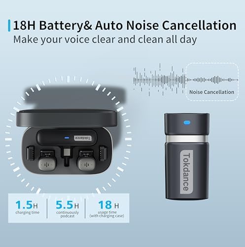 【Dual-Channel Lossless Pickup & Noise Cancellation & Windscreen】 With dual-channel lossless sound pickup, you can record two sound sources at the same time.Excellent audio collection performance, with Tokdance’s unique noise-cancelling technology.Microphone Windscreen:Effectively suppresses wind and noisy environments while still recording clear sound.