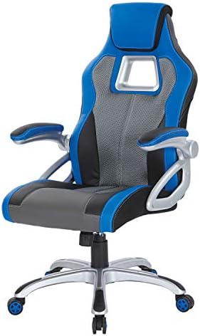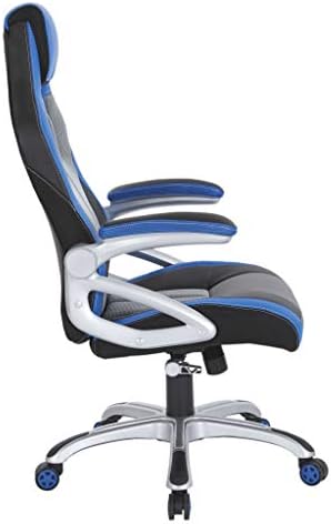 OSP Home Furnishings Race Car Adjustable Gaming Chair, Charcoal Grey Bonded Leather with Blue Accents